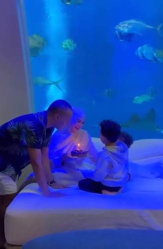 ” Allahuakbar alhamdulillah.. Bestnya.. Rasa mcm mermaid.. Bilik mcm ni… i rasa 1 family tak tdo sbb excited tgk fish.. Lets keep swimming.. ”