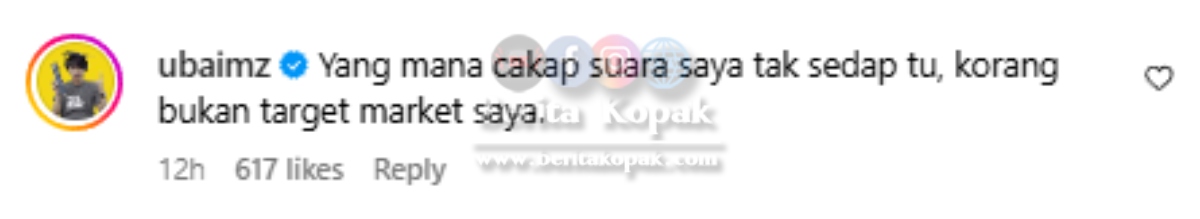” Yang mana cakap suara saya tak sedap tu, korang bukan target market saya.. ” – Ubai