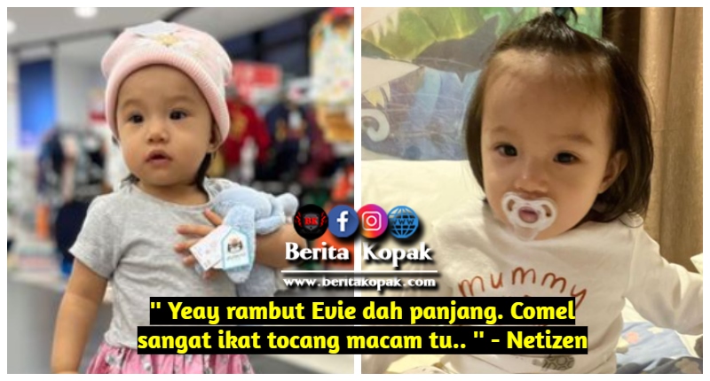 ” Yeay rambut Evie dah panjang. Comel sangat ikat tocang macam tu.. ” – Netizen